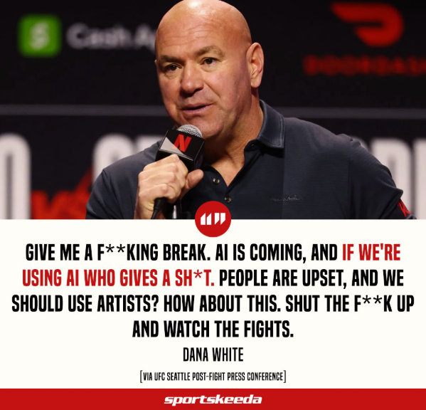 "Give me a fking break. AI is coming, and if we're using AI, who gives a sh*t? People are upset about it? We should use artists? How about this. Shut the fk up and watch the fights."
