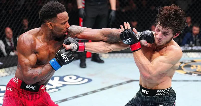 Murphy came out sharp. His footwork was clean, his right hand was landing, and he was working the body early. Evloev was stalking forward throwing wide overhands and body kicks but he wasn't shooting. At all. For the first ten minutes of this fight, the #1 ranked featherweight in the world, a guy whose entire identity is built on his wrestling, did not attempt a single takedown. Zero.