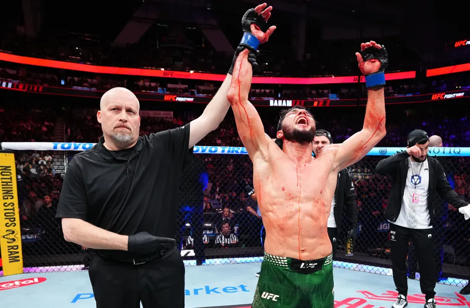 Moments later, Musayev landed a headbutt during a clinch exchange. Again, Wombacher didn't call it. Veteran MMA journalist Adam Martin was posting in real time on X, stunned at what he was watching. "OMG Musayev headbutted Bahamondes and the ref didn't say anything," Martin wrote. "The ref just missed a blatant fence grab, and the fight has completely turned."